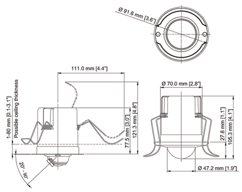 Za generowanie klarownych, ostrych i szczegółowych obrazów w maksymalnej rozdzielczości do 640x480 pikseli odpowiada przetwornik CMOS 1/4" z technologią progresywnego skanowania. Technologia ta zwiększa jego ostrość, przez co kamera może wiernie odwzorowywać poruszające się obiekty, częstotliwość odświeżania obrazu do 30 klatek na sekundę dla każdej dostępnej rozdzielczości gwarantuje wysoką płynność nagrań wideo. Specjalna obudowa kamery pozwala na wnękowy montaż w syficie podwieszanym, przez co kamera staje się prawie niezauważalna dla osób znajdujących się w strefie monitorowanej.