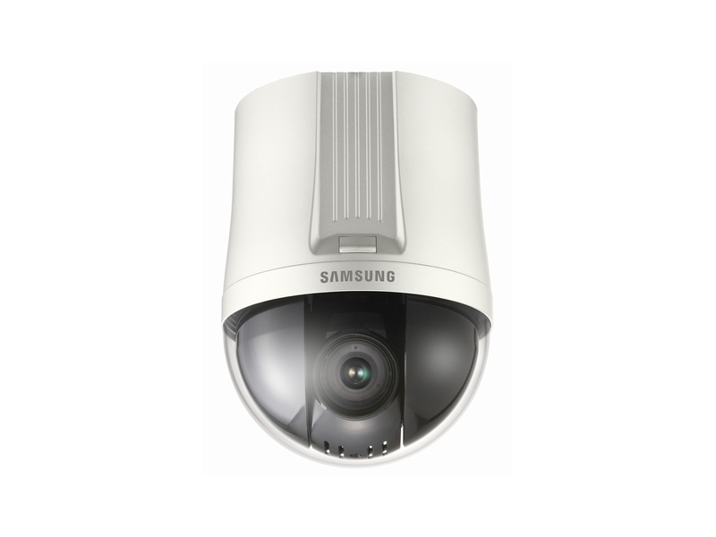 Wewnętrzna kamera szybkoobrotowa Samsung w wersji SNP-5200 to profesjonalne urządzenie dozorowe, zaprojektowane z myślą o prowadzeniu efektywnego nadzoru wideo na dużych powierzchniach. Jedną z podstawowych zalet użytkowych kamery IP SNP-5200 jest 20-krotny zoom optyczny, obrót w zakresie 360° do nieskończoności oraz pochylenie w zakresie 190°, dzięki czemu pozwala na dokładną identyfikację i śledzenie obserwowanych osób.