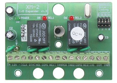 XM-2-BRD to łatwy w instalacji ekspander wejść i wyjść, umożliwiający rozbudowę systemów kontroli dostępu firmy Roger. Prezentowany produkt został wyposażony w dwie linie wejściowe oraz dwie linie wyjściowe typu przekaźnikowego. Model XM-2-BRD sprzedawany jest bez obudowy i wymaga zasilania znamionowym napięciem stałym 12V. XM-2-BRD jest urządzeniem adresowalnym, sterowanie nim odbywa się za pomocą linii CLOCK i DATA zgodnych z standardem RACS (Roger). Może być dołączony do kontrolerów serii PR302/PR302LCD/PR402 lub do terminali dostępu serii PRTx2.