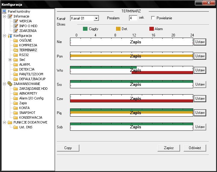 Sprawdzone i pewne rozwiązaniaSystem rejestratora LC 0404LE-A został oparty o LINUX’a, menu jest bardzo przejrzyste, czytelne a najważniejsze przyjazne dla użytkownika. Menu posiada język Polski. Tryb pracy PENTAPLEX to dobre rozwiązanie umożliwiające wykonanie aż pięciu operacji jednocześnie:
