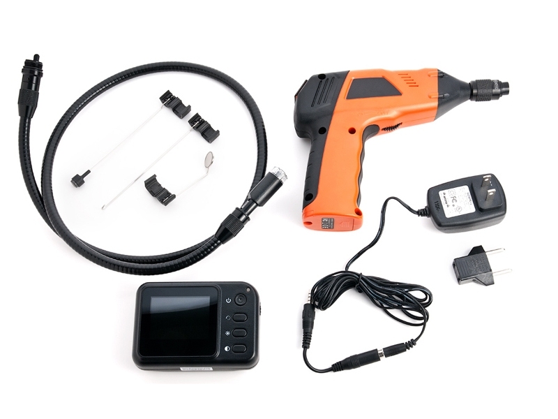 Prezentowany produkt wyposażono w wodoodporną mini kamerę, która została umieszczona na elastycznej rurce o długości 1 m. Dzięki wbudowanym diodom LED możliwa jest penetracje w miejscach pozbawionych oświetlenia. Obraz z mini kamery jest wyświetlany na bezprzewodowym ekranie 2,5" TFT-LCD (zasilany za pomocą akumulatora Li).