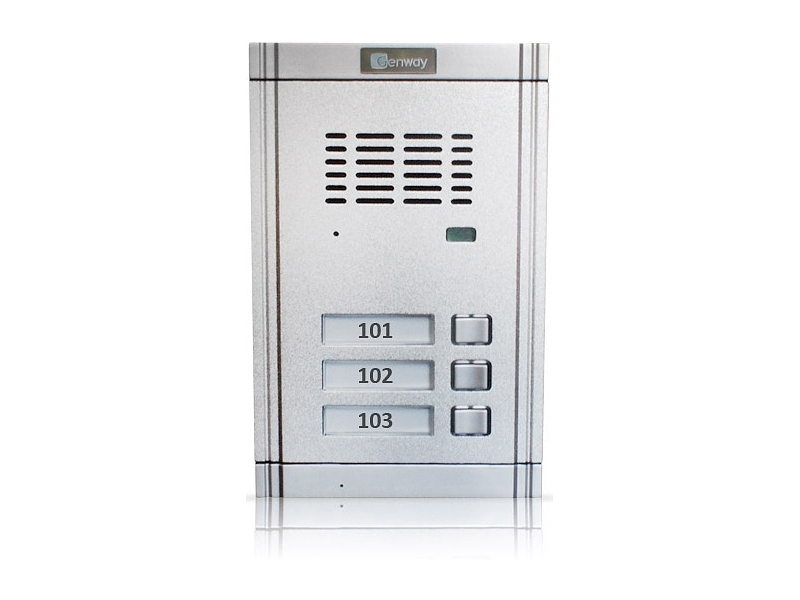 WL-02NE-3 to bardzo funkcjonalny panel domofonowy przeznaczony do systemu trzyrodzinnego. WL02NE3 wykonany jest z aluminium i montowany podtynkowo. Panel posiada podświetlane szyldy z nazwiskami lokatorów widzialne w ciemności. Użytkownik panelu ma możliwość zamonowania go natynkowo po zamontowaniu specjalnego daszka dostępnego w naszej ofercie produktów GENWAY. W systemie z domofonem wielorodzinnym WL-02NE-3 mogą pracować równorzędnie dwa panele zewnętrzne podłączone do modułu CM-02NEQH. Pod jednym przyciskiem wywoławczym mogą pracować maksymalnie 4 unifony podłączone do modułu CM-02NECH. Panel przystosowany jest do montażu na zewnątrz budynków i odporny jest na zmienne warunki atmosferyczne oraz mróz.